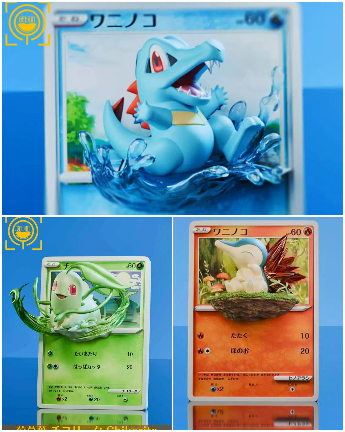 Pokemon Geisha Studio Chikorita x Totodile x Cyndaquil Card Resin Statue