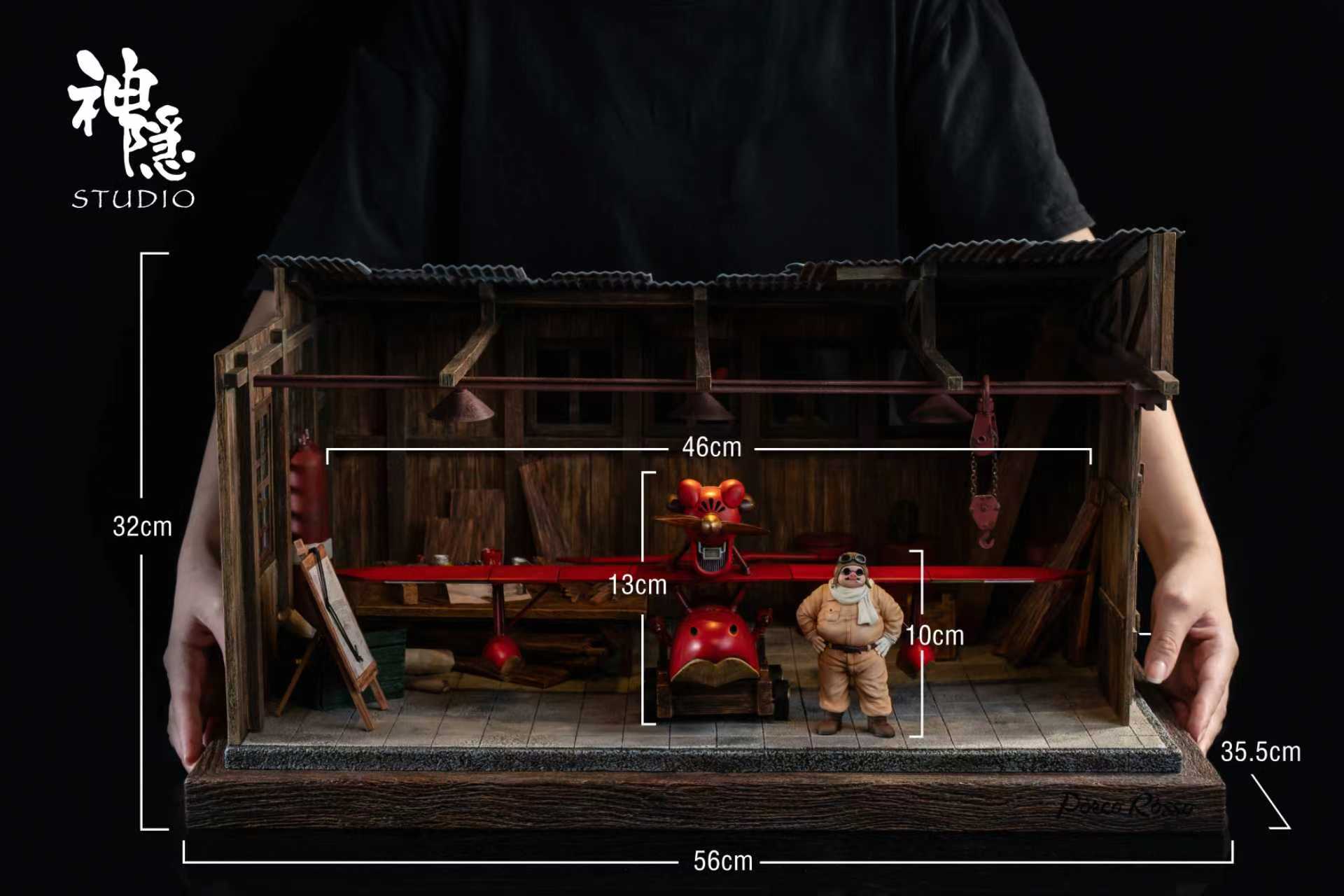 • Est. Size: Porco Rosso: H10CM Size plane: H13 W46 D29CM Size base: H4 W29 D23.5CM Size set: H18.5 W46 D29.5CM