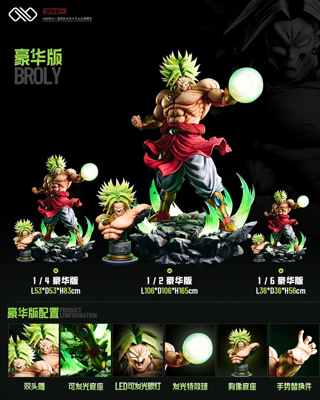 - Size: 1/2: L106*D106*H165CM (Broly height without base 146CM)