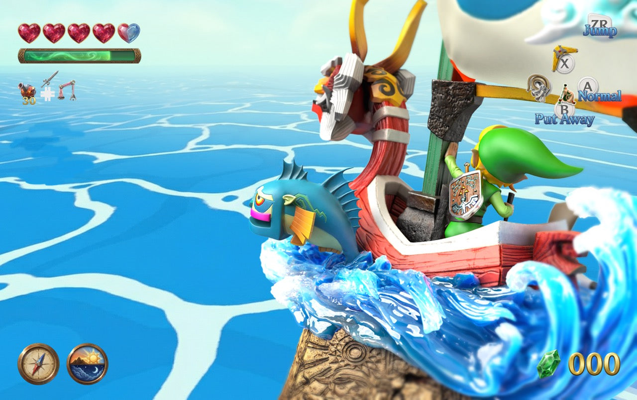 Feature The base features intricate 3D relief sculpture faithfully recreating the game’s opening mural, bringing the epic legend of Hyrule back to life; the base includes illuminated wave effects (LED lighting), paired with the dynamic sailing pose of the King of Red Lions, transparent wave elements, soaring seagulls, and the iconic Fishman figure as accents—perfectly capturing the classic seafaring adventure scene