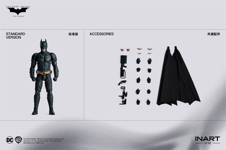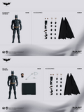 - Standard Masked Head Sculpt *1- Unmasked Head Sculpt *1- Fully Articulated Body *1- Interchangeable Face Plates *3- Sets of Interchangeable Hands *9 Including:- Fists *1 Pair- Open Palm Hands *1 Pair- Relaxed Hands *1 Pair- Sticky Bomb Gun Supporting Left Hand *1- Sticky Bomb Gun Holding Right Hand *1- EMP Rifle Supporting Left Hand *1- EMP Rifle Holding Right Hand *1- Batarang Holding Right Hand *1- Grapple Gun Holding Right Hand *1- Removable Drape Cape *1- Batarang (A)*2- Batarang (B)*2- EMP Rifle *1- Grapple Gun *1- Sticky Bomb Gun *1Deluxe Edition Extra Accessories- Diorama Base *1- Transparent Stand *1