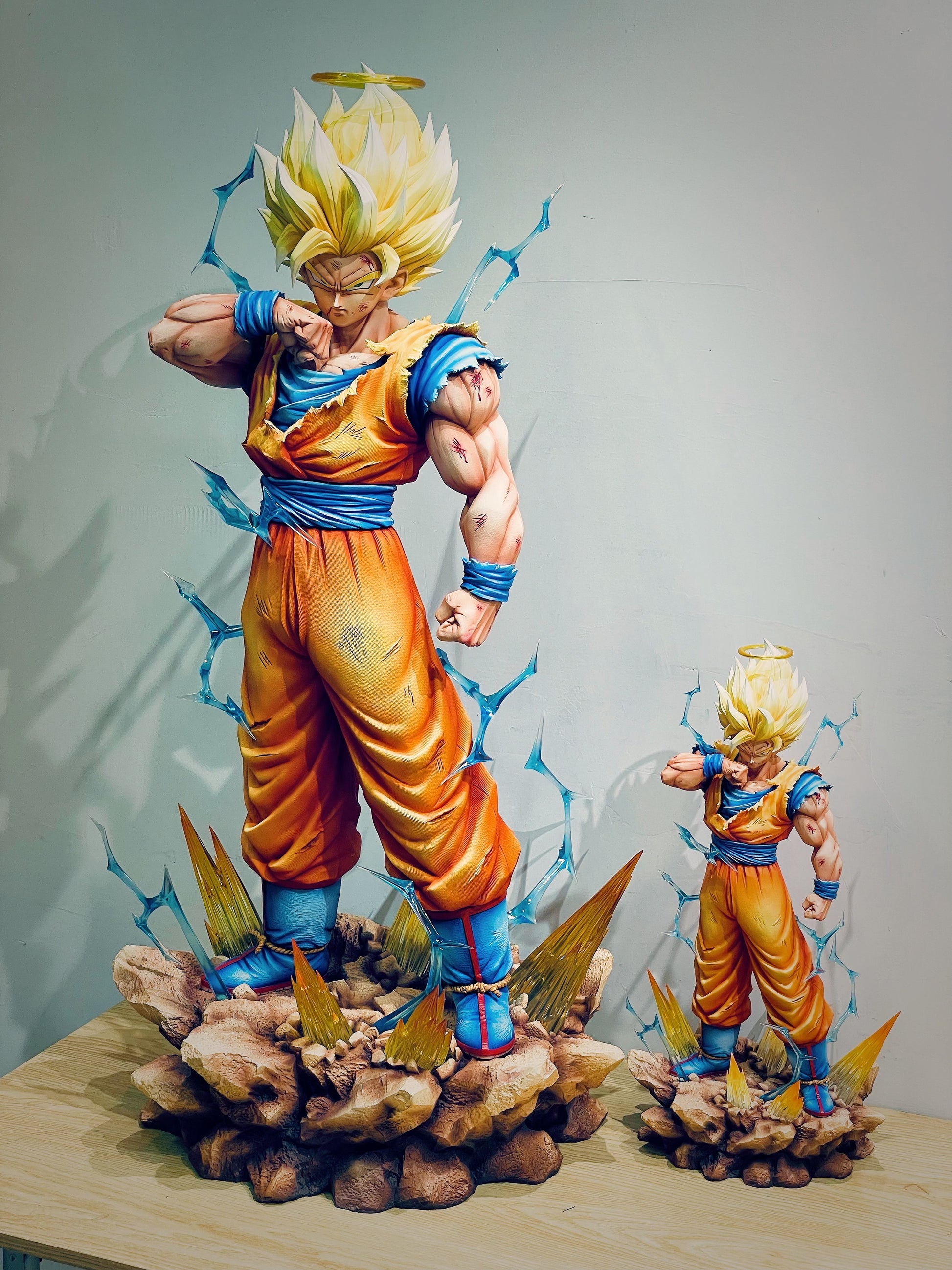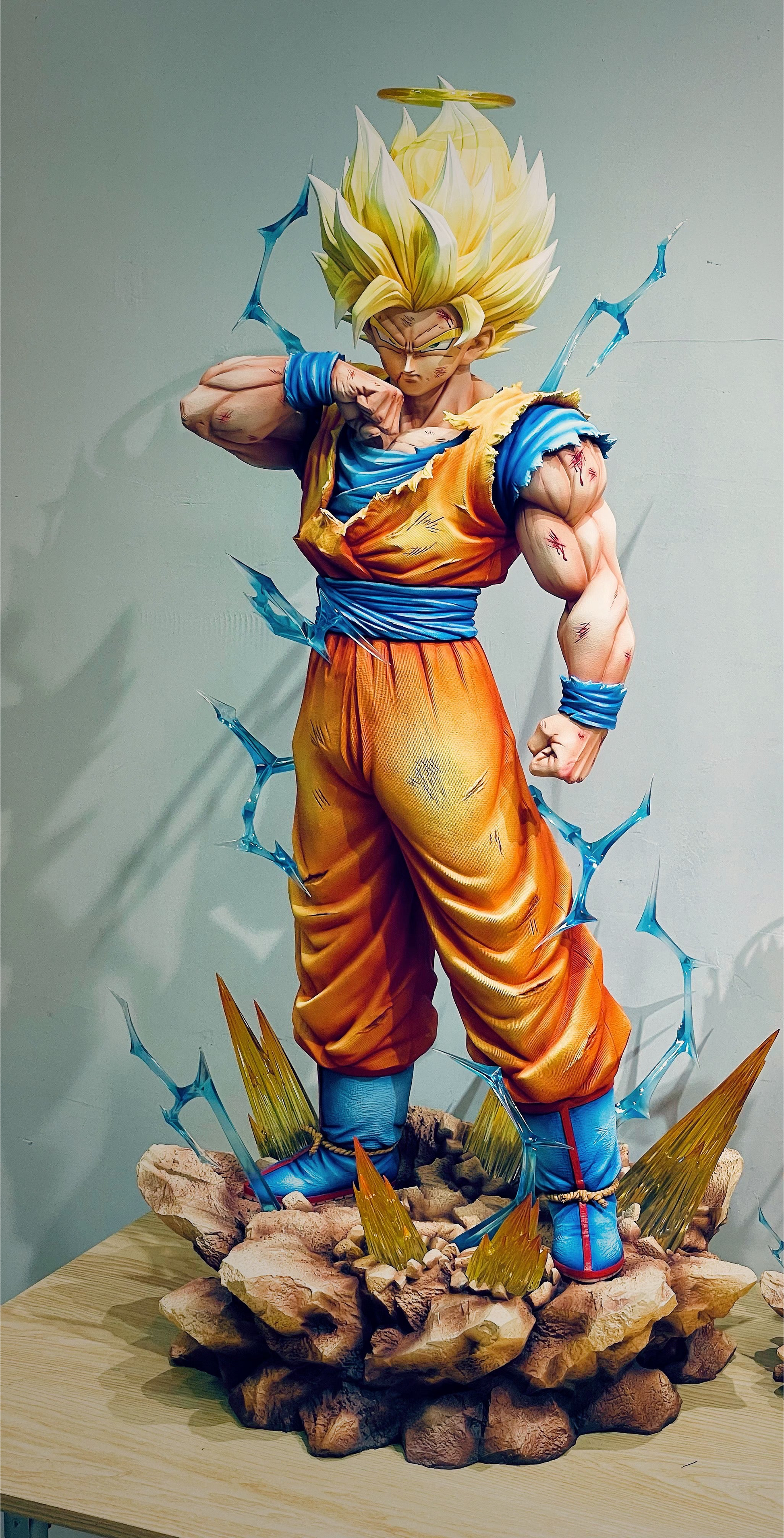 ⚠️ Official Infinite Studio update: the final version of the Goku Super Saiyan 2 statue will feature blue belt and wristbands (purple version cancelled), with a single head sculpt including a halo.