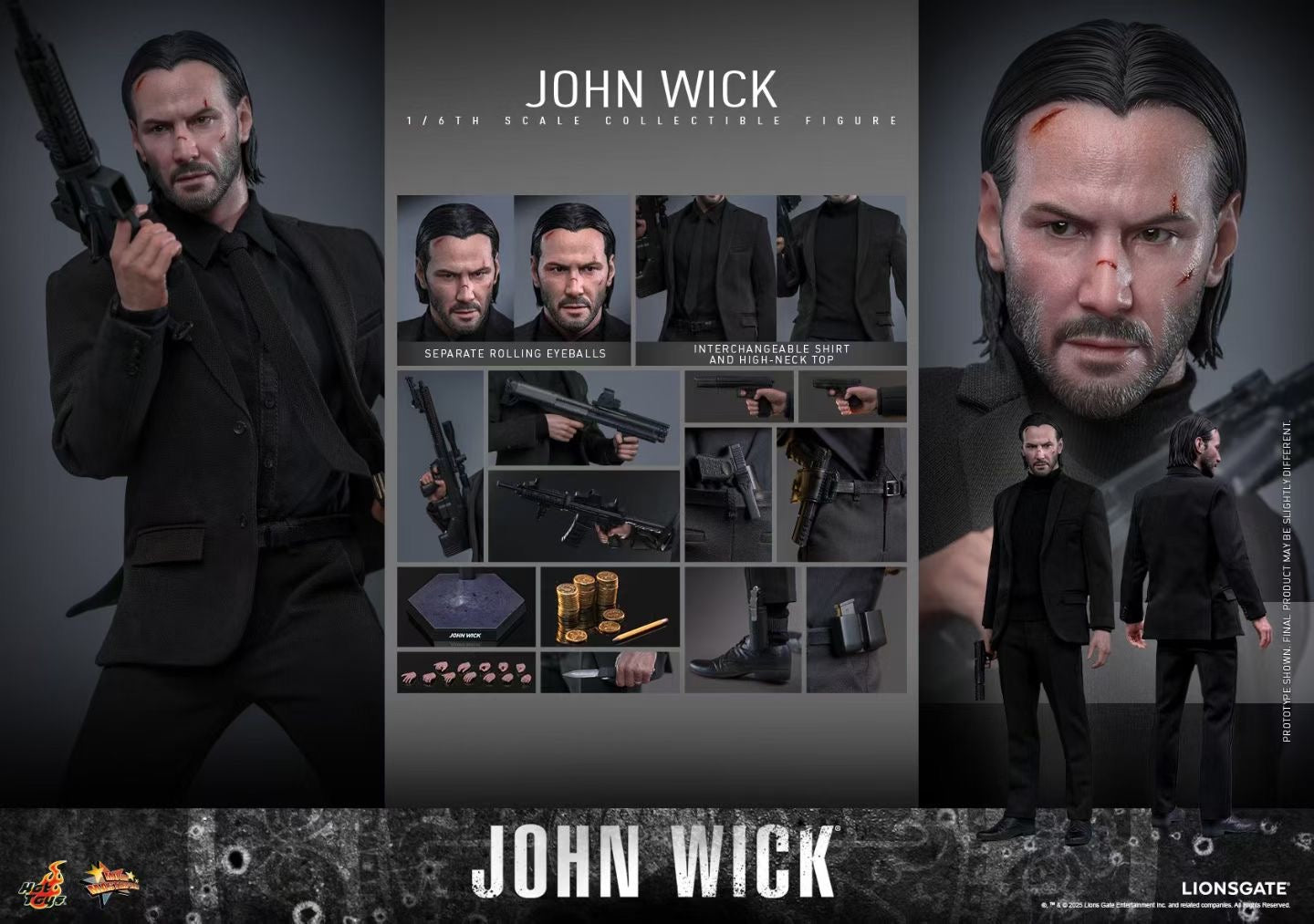 - The 1/6th scale John Wick Collectible Figure specially features: Authentic and detailed likeness of Keanu Reeves as John Wick in John Wick Newly developed head sculpt with battle-damaged paint applications and separate rolling eyeballs Movie-accurate facial expression with detailed beard and skin texture Meticulously sculpted black mid-length slicked back hairstyle Approximately 31 cm tall Body with 30 points of articulation